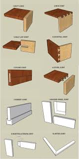 Types of wood joints. Lets dive right in going through the most common wood joints you need to know before you embark on your next woodworking project. Dado Joinery A dado is nothing more than a square-grooved slot on one board where another board will fit. Similar to tongue and groove joinery This is a commonly-used wood joint for connecting plywood.